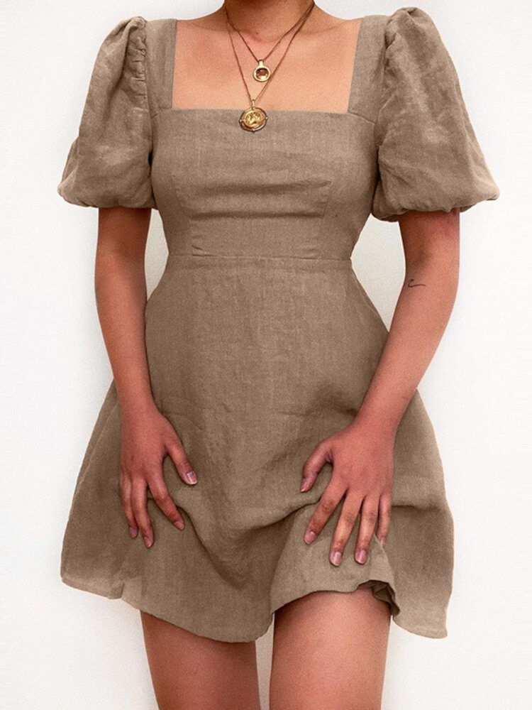Uformell Plain Square Neck Puff Sleeve A-line Mini Kjole