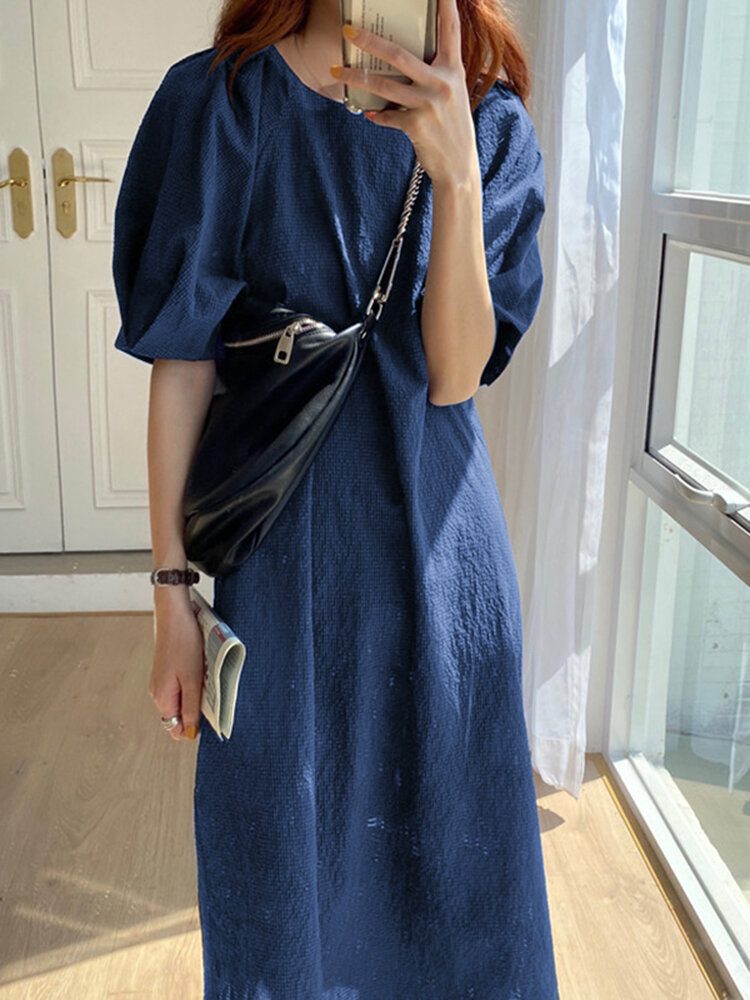 Uformell Vanlig O-hals Rutete Maxikjole Med Puffermer Med Lomme