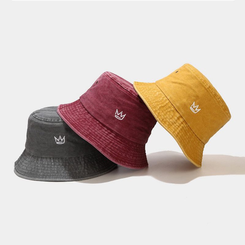 Unisex Vasket Laget Gammel Bøttehatt Bomull Kronemønster Broderi Enkel Solskjermhatt