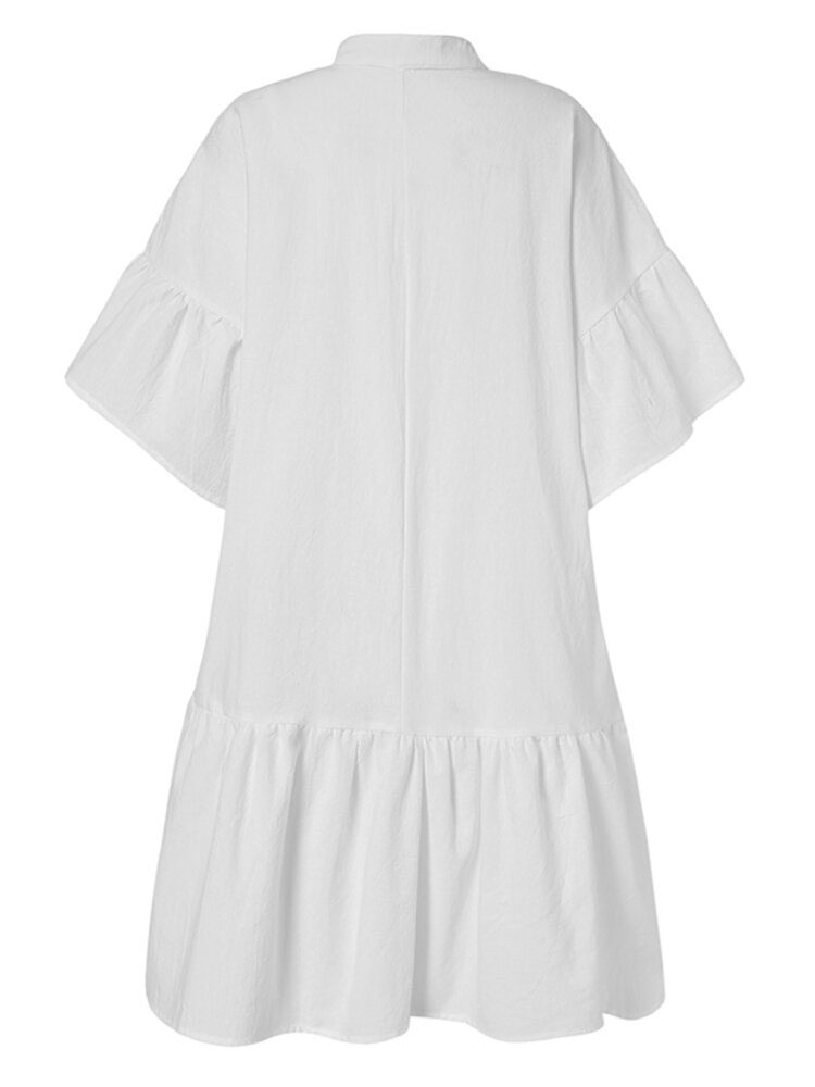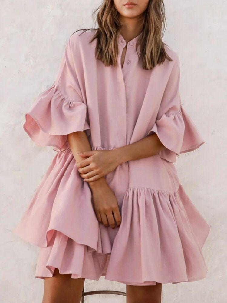 Uregelmessig Uregelmessig Volangserm For Kvinner Plisseret Knapp Uformell Minikjole