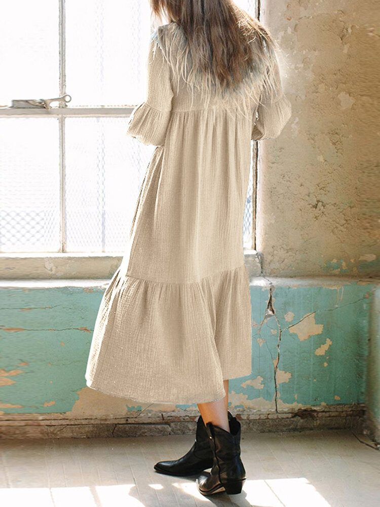 V-hals Bomull Volanger 3/4-ermer Uformelle Maxikjoler