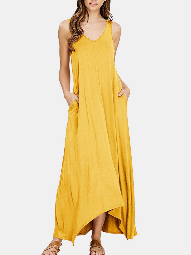 V-hals Ermeløs Solid Pocket Summer Brief Maxi Dress