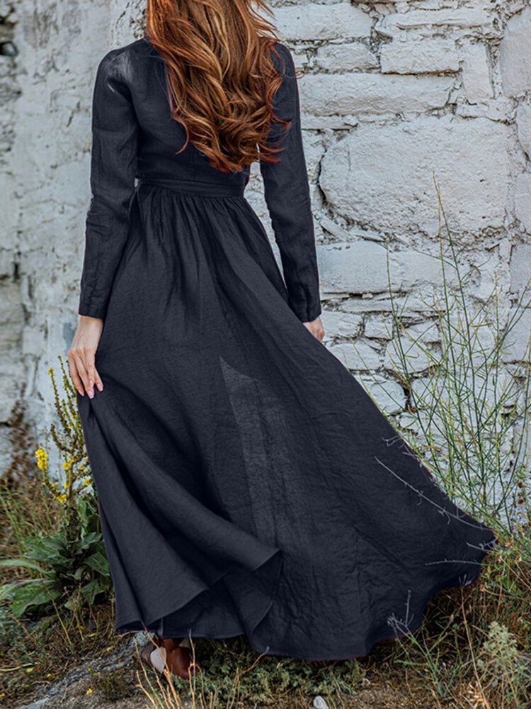 V-hals Langermet Sash Solid Brief Maxikjole