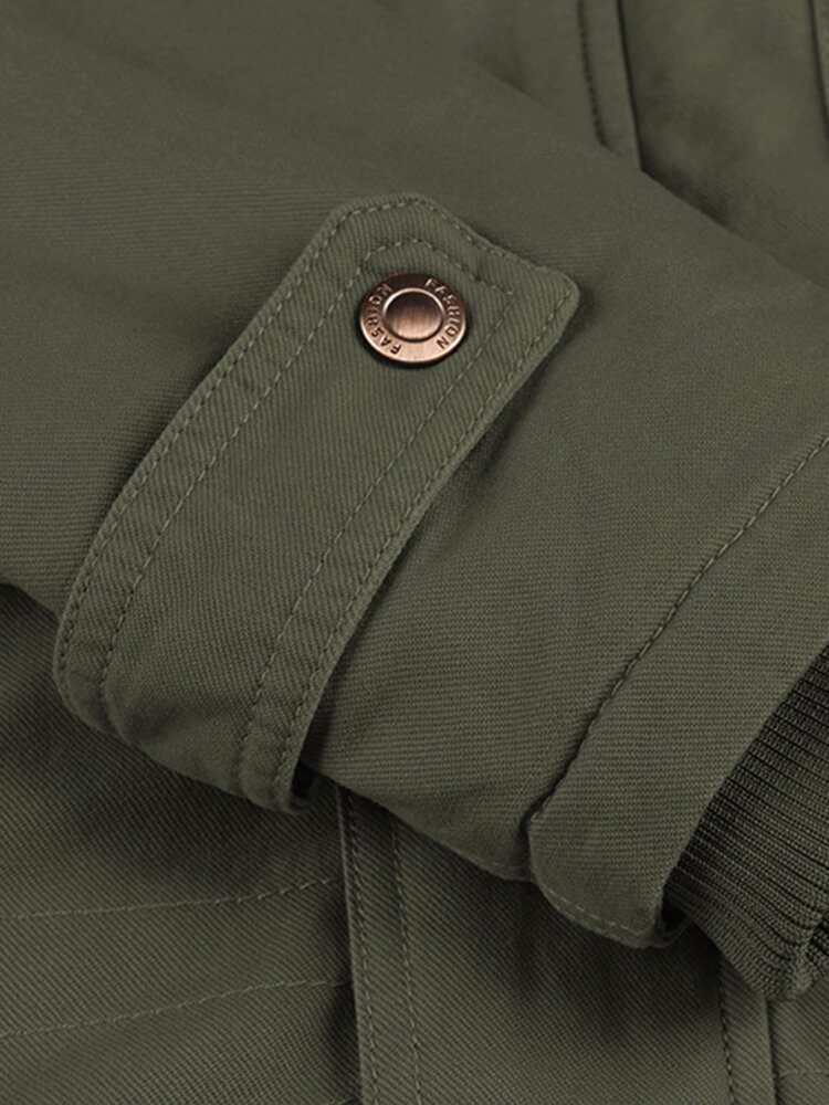 Varm Fleecefôret Vintage Tykk Hettejakke For Menn Med Multilomme